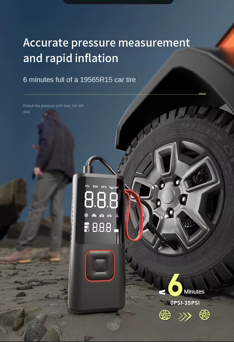 – Inflation rapide : Avec une capacité de 80W,cette pompe gonfle un pneu 195/65R15 de vide à plein en environ 6 minutes. C’est un excellent appareil pour vous ramener sur la route rapidement,minimisant le temps d’attente et garantissant des performances fiables.