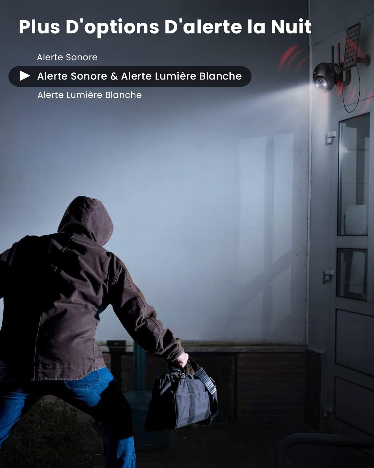 🥇【98% de Détection Précise】La caméra extérieure sans fil reconnaît, capture et transmet des images claires des corps en mouvement. Vous recevrez une notification d’alarme dans les 3 secondes suivant la détection d’un mouvement. Réduit les fausses alarmes causées par les feuilles, les ballons, les pigeons, etc. Vous pouvez choisir entre trois modes d’alarme : sirène/lumière/sirène et alarme lumineuse.