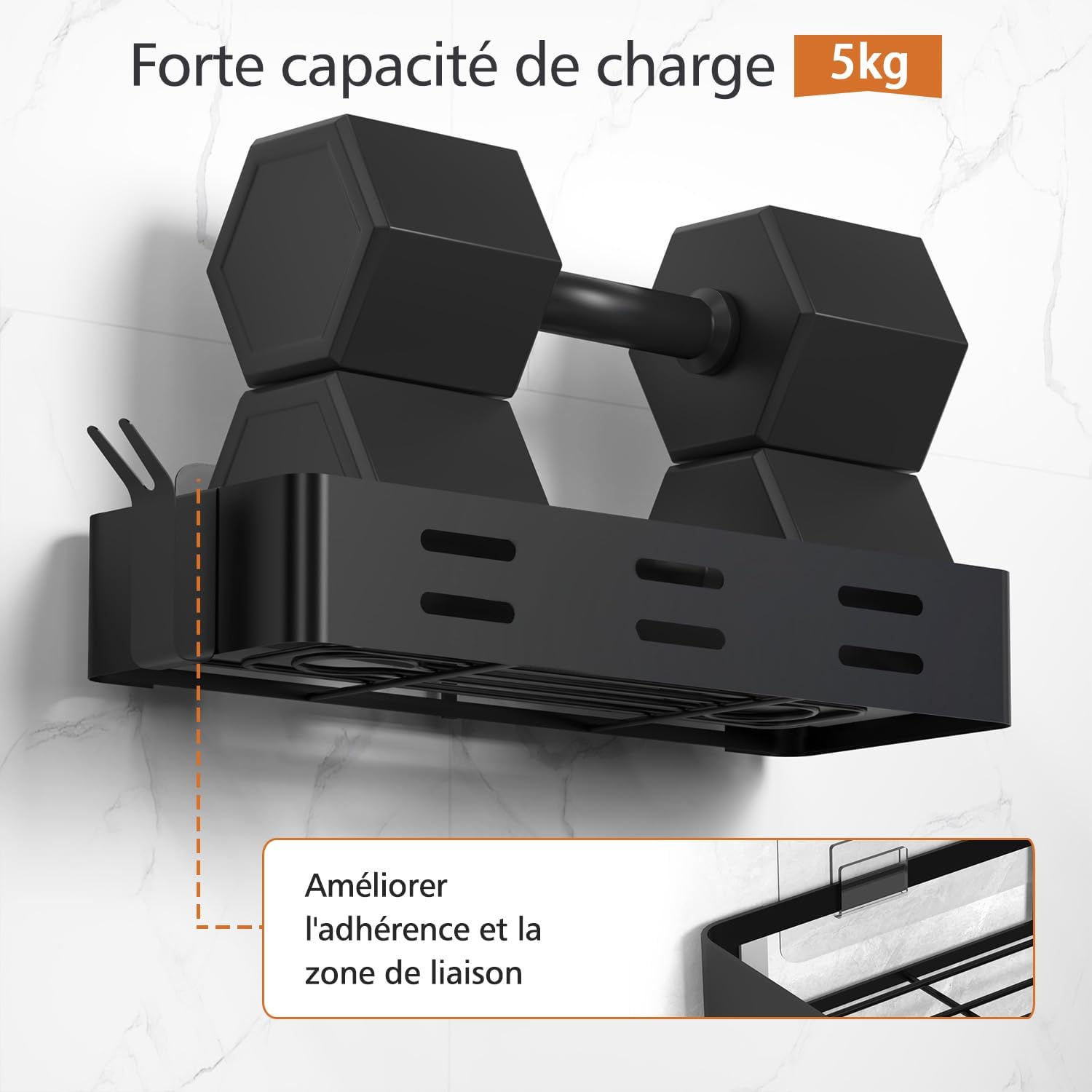Cooeco Etagere Douche, Etagere Salle de Bain Sans Percage 2 Pièces Avec Porte Savon Douche et Crochet Rangement Douche Porte gel Douche Salle de Bain, Noir Plage de prix : 17,97 € à 61,97 €