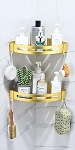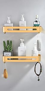 ♦ [À PROPOS DE LA COULEUR] La couleur du Étagère de Douche est le Or Brassy, pas l’or pur. En raison de l’affichage de l’écran et des lumières de la caméra, il peut y avoir une légère différence entre la couleur réelle du produit et les images.
