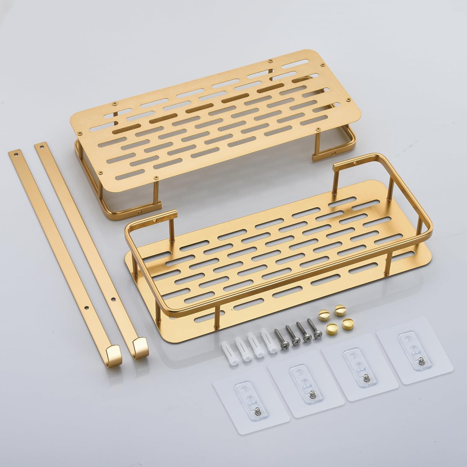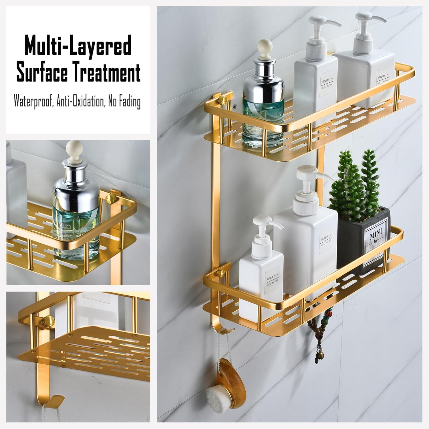 Étagère de Douche Sans Perçage, Etagere Salle de Bain avec Crochets Carré Tablette Murale pour Rangement 2 Étages, D'or Champenois 36,97