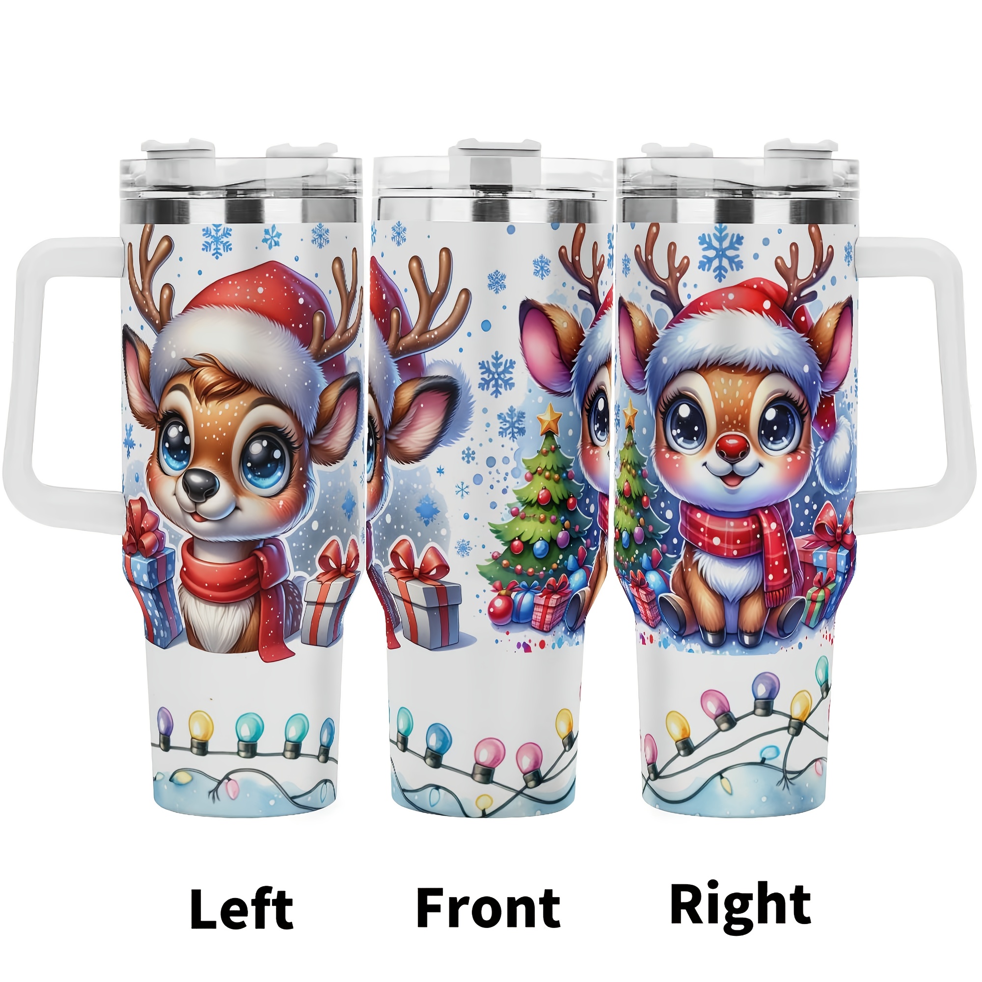 Gobelet isotherme en acier inoxydable de 40 onces à thème de Noël avec motif mignon de cerf, couvercle et paille – sans BPA, idéal pour Halloween, Noël, la Fête des Pères et la Fête des Mères