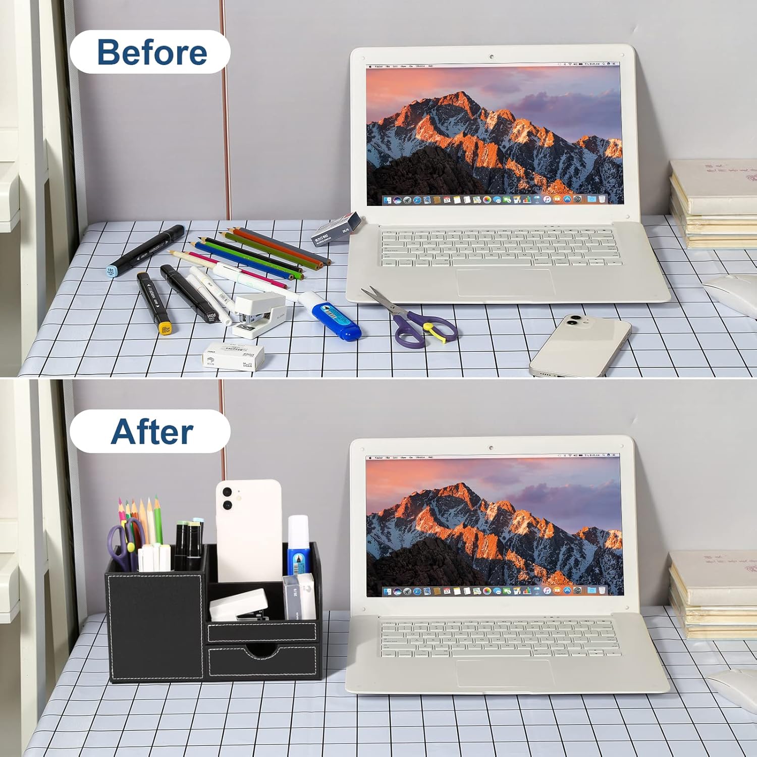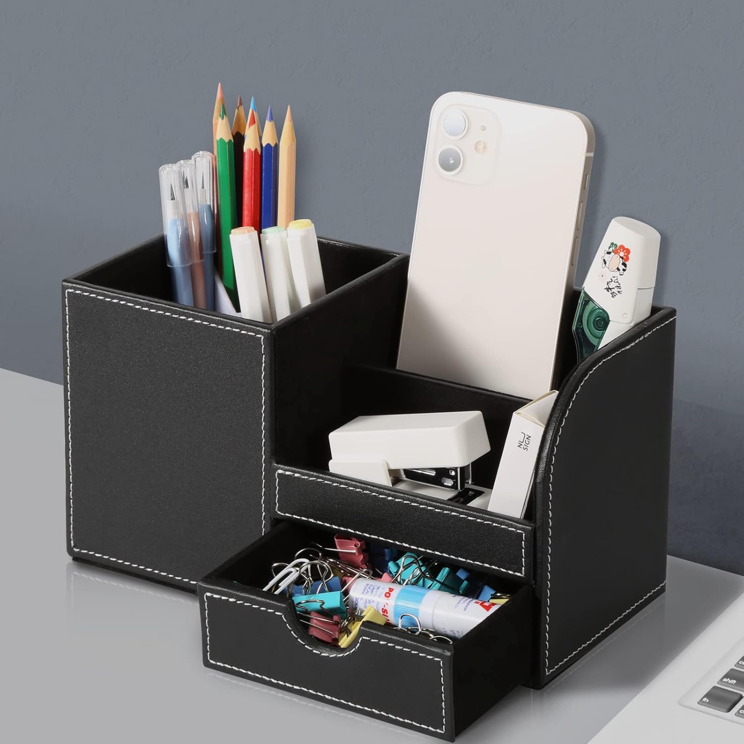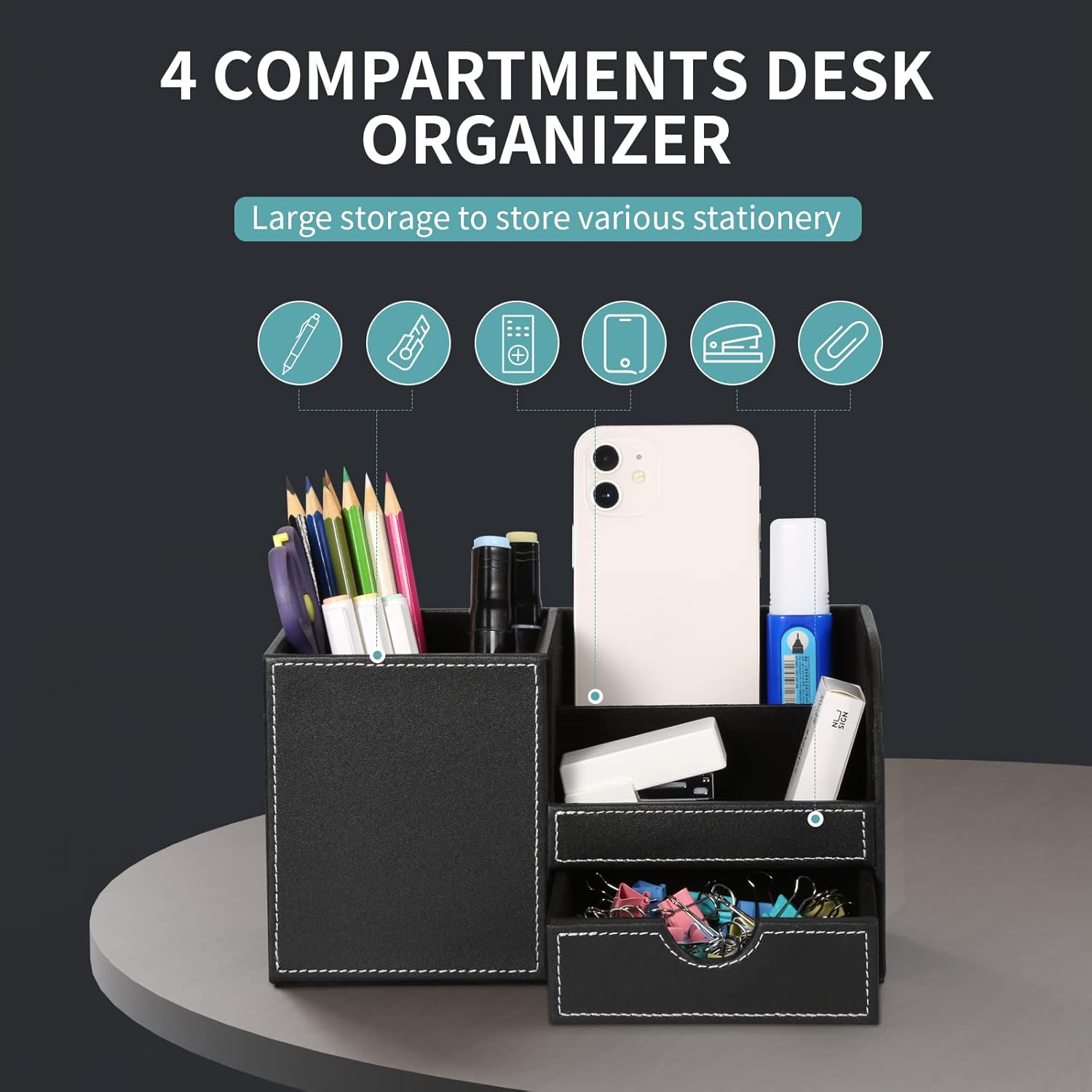 Optimisez votre espace de travail avec l’organisateur de bureau GORESE. Fabriqué en bois, cet élégant rangement noir est doté de six compartiments distincts, offrant une solution parfaite pour classer et organiser vos fournitures et accessoires essentiels. Son design raffiné et professionnel s’intègre avec discrétion et harmonie à tout environnement, favorisant un bureau ordonné et une productivité accrue. Ce modèle en bois noir est un choix intemporel, et d’autres coloris sont également disponibles pour personnaliser votre espace.