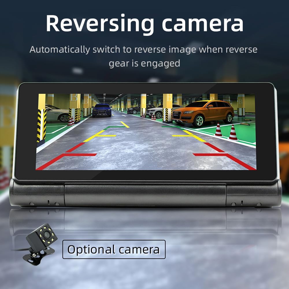 - L’écran change automatiquement les images de recul lors de l’engagement de la marche arrière et offre un grand angle de vue. caméra de recul NON incluse