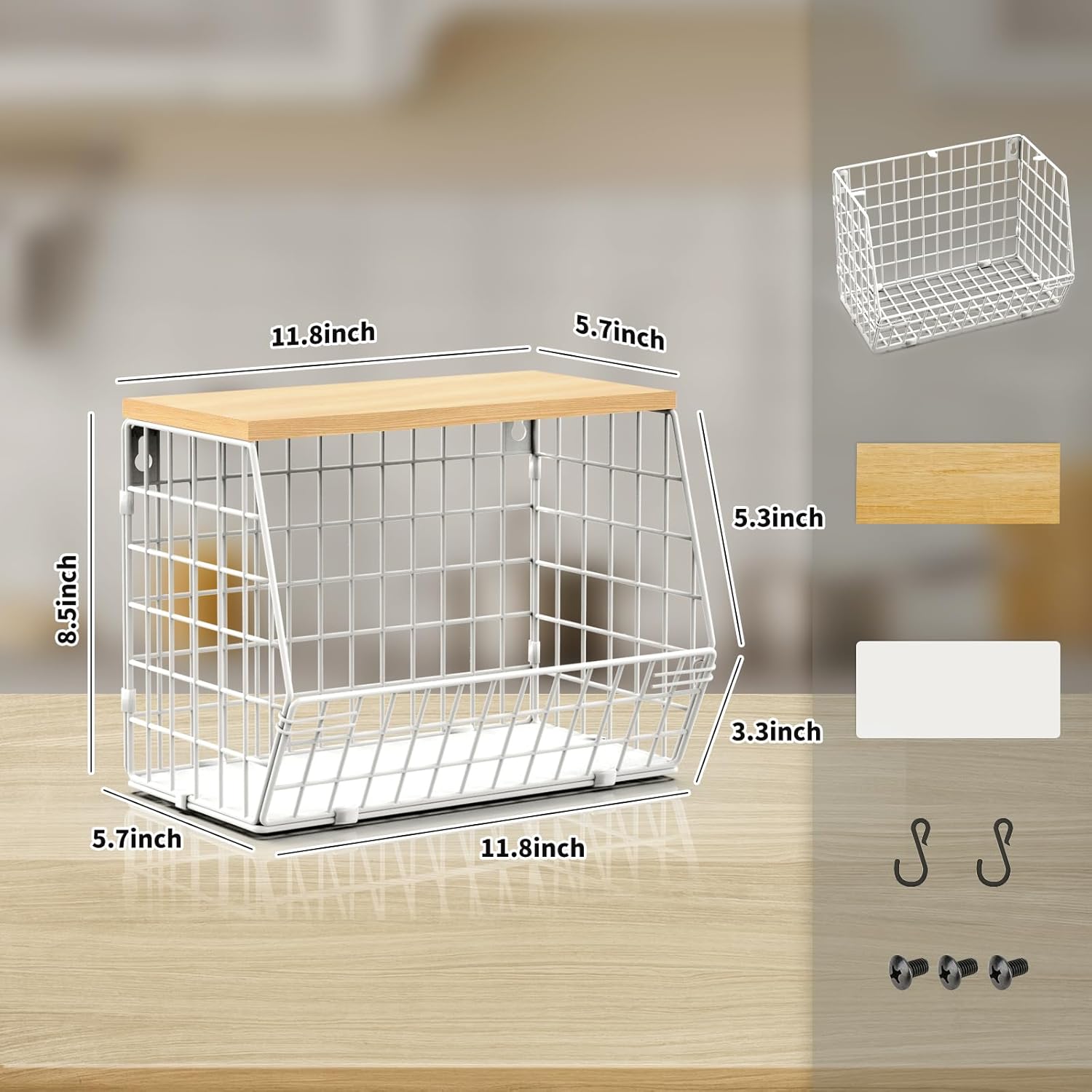 Taille du paquet: Le paquet corbeille fruit contient 1 panier métallique, 1 planche de bois, 1 coussinet en plastique, 2 petits crochets et 1 paquet d’accessoires à vis. La taille du comptoir de cuisine est de 11,8″*7,9″*8,5″. Corbeille a fruit pour cuisine avec couvercle en bois, adapté à l’organisateur de comptoir de rangement de cuisine, au panier de rangement suspendu de cuisine, à l’organisateur de garde-manger, à l’organisateur de collations, au stockage de fruits et légumes, etc.