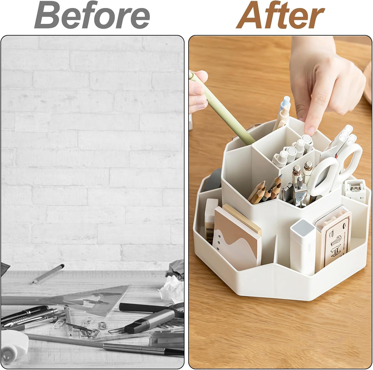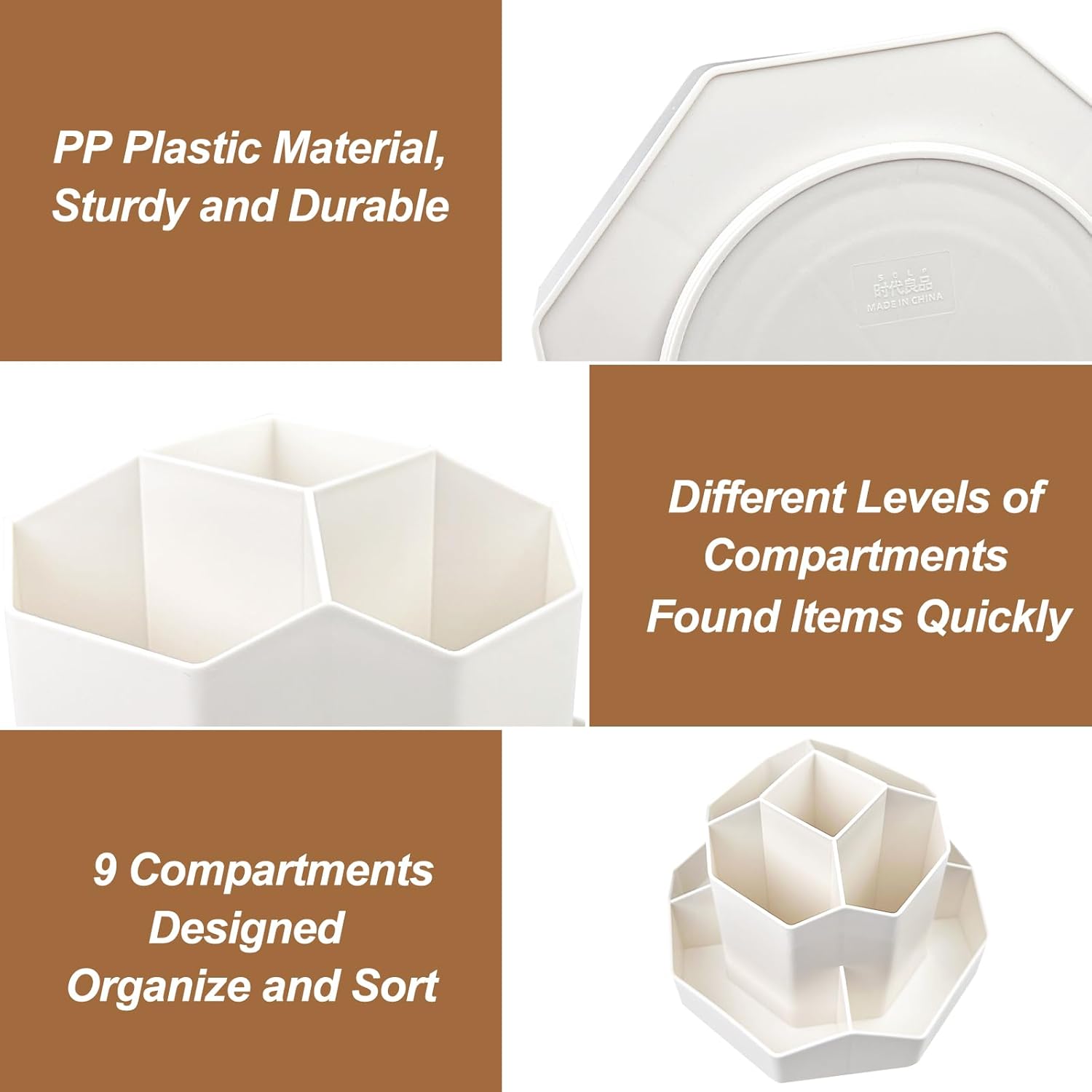 【Conception des Compartiments】 Le Pot a Crayon est équipé de 9 compartiments indépendants, qui peuvent séparer les éléments stockés et aider à les organiser et à les classer. Il existe des différences de hauteur entre les compartiments, ce qui permet aux utilisateurs de trouver rapidement les articles dont ils ont besoin, ce qui améliore la commodité d’accès.