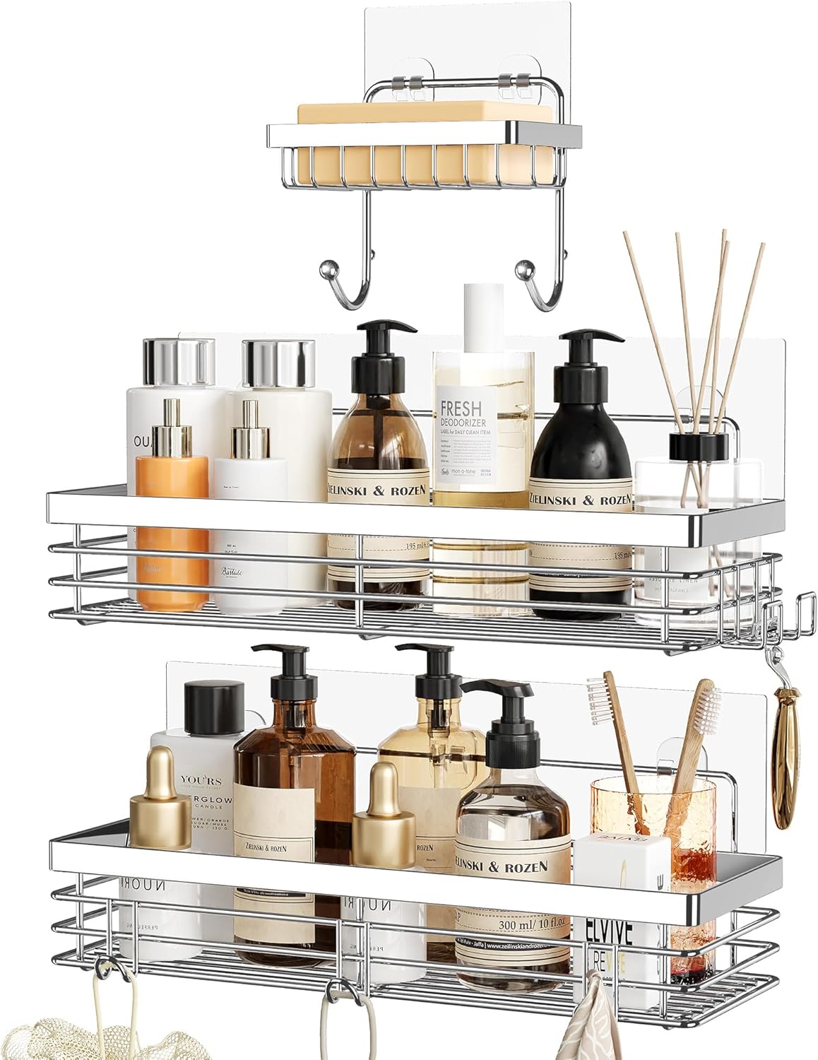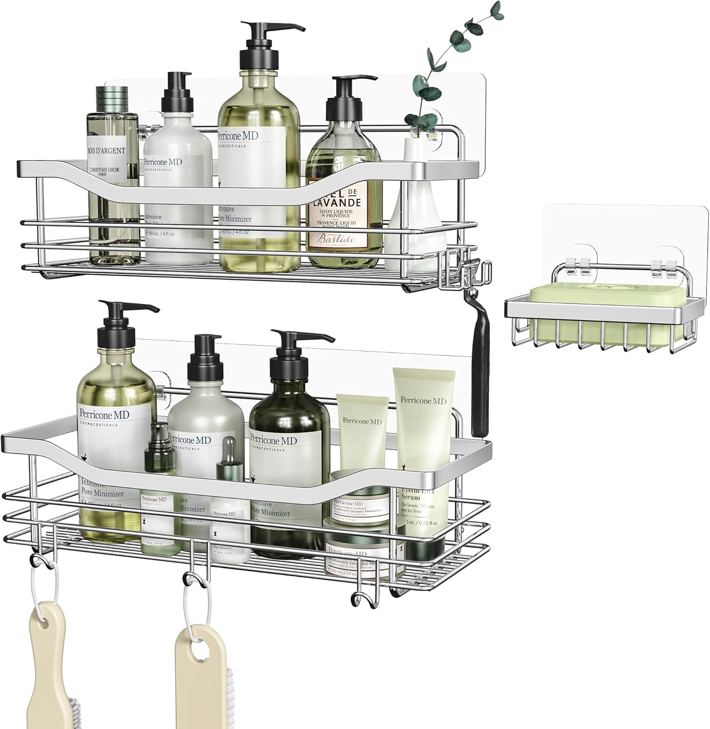 Design à 5 crochets, 2 crochets latéraux pour rasoirs, 3 crochets avant pour éponges ou serviettes.