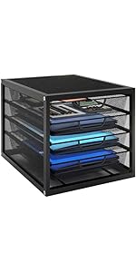 【Conception Humanisée】La plaque latéral du organisateur de rangement de bureau adopte un design creux pour respirer et resister à la moisissure et à l’humidité. La conception de l’arc lisse ne rayera pas l’utilisateur, sûre et pratique.
