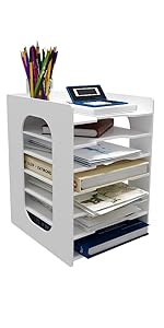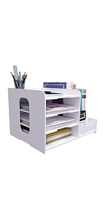 【Organisateur de Bureau】Adopter à une conception de 2 parties, pour une partie de ce organisateur de bureau, vous pouvez classer des ducuments, des fichiers et des dossiers, et l’autre partie, vous pouvez placer les petites accessoires quotidiennes, par exemple, stylos, gommes, et les rubans adhésifs, etc.