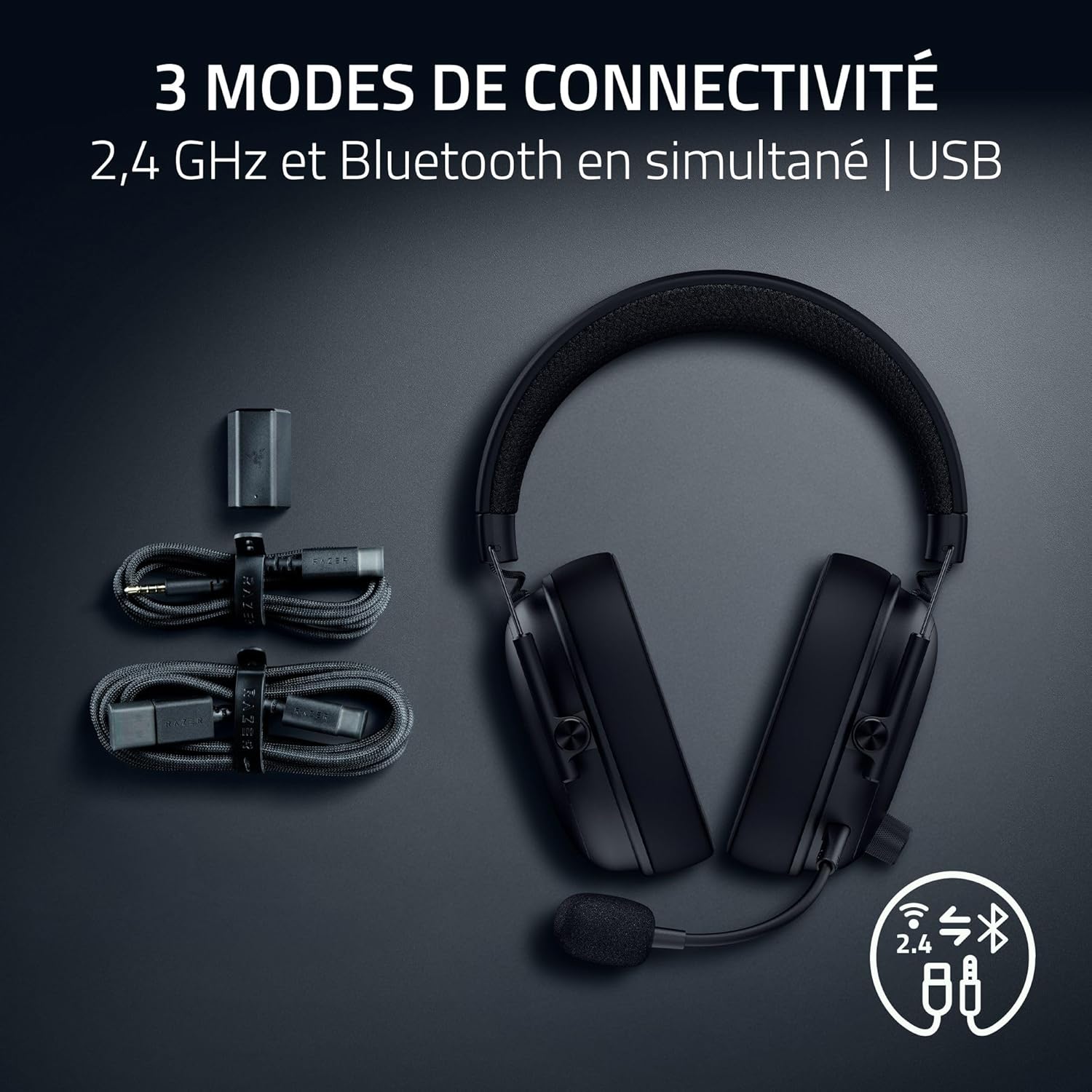 3 modes de connectivité – 2,4 GHz et Bluetooth en simultané | USB: Prenez l’avantage sur PC, console ou appareil mobile. Combinez simultanément l’audio 2,4 GHz et Bluetooth sur deux appareils à la fois, ou restez branché pour jouer sans interruption grâce à l’USB.