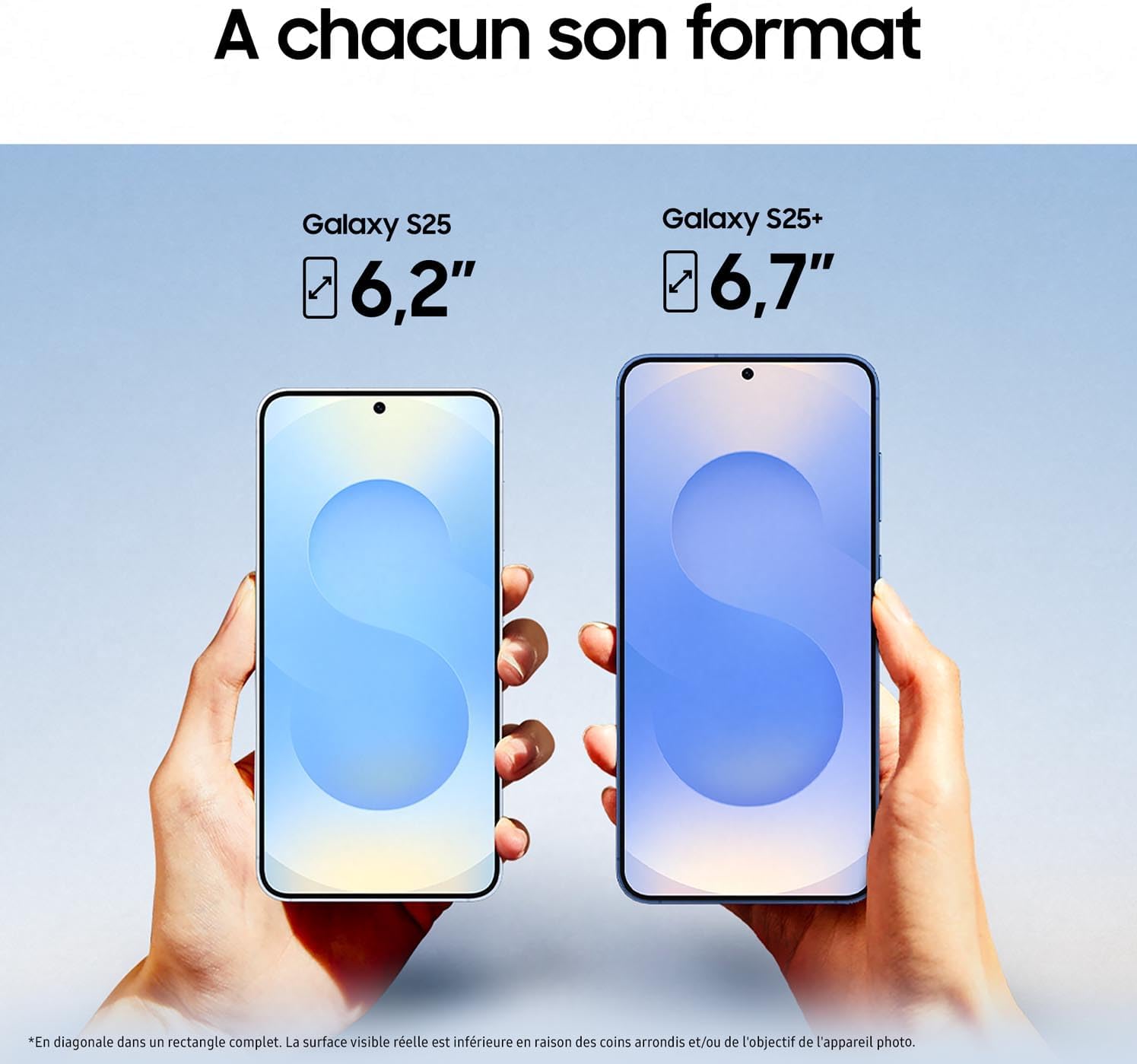 La série Galaxy S25 offre la plus grande capacité de mémoire avec 12 GB. Le Galaxy S25 et le Galaxy S25+ offrent une capacité de stockage allant jusqu’à 512 GB.¹⁹ ²⁰