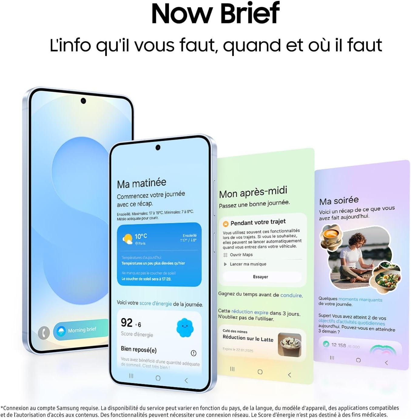 Il vous connaît mieux que quiconque. Avec Now Brief, votre partenaire intelligent vous fournit les informations essentielles tout au long de la journée. Le matin, démarrez avec un aperçu de vos tâches et événements à venir ou encore de votre score d’énergie. Le soir, revivez les moments marquants de votre journée grâce à un récap de votre activité quotidienne. ¹⁶