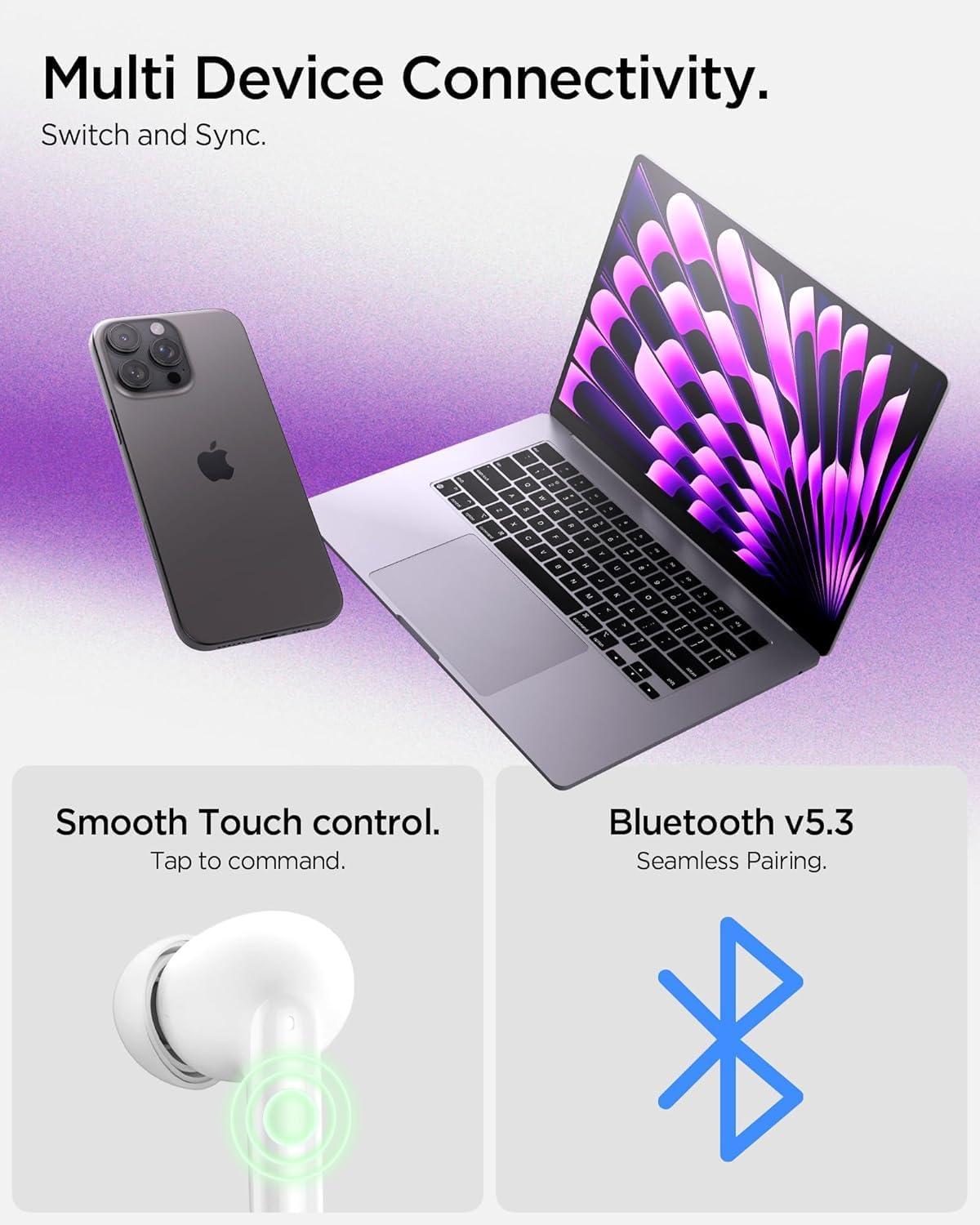 Son personnalisable : améliorez votre expérience d’écoute avec l’application Spigen Audio, qui propose 5 profils sonores prédéfinis et un égaliseur personnalisable en fonction de vos préférences individuelles