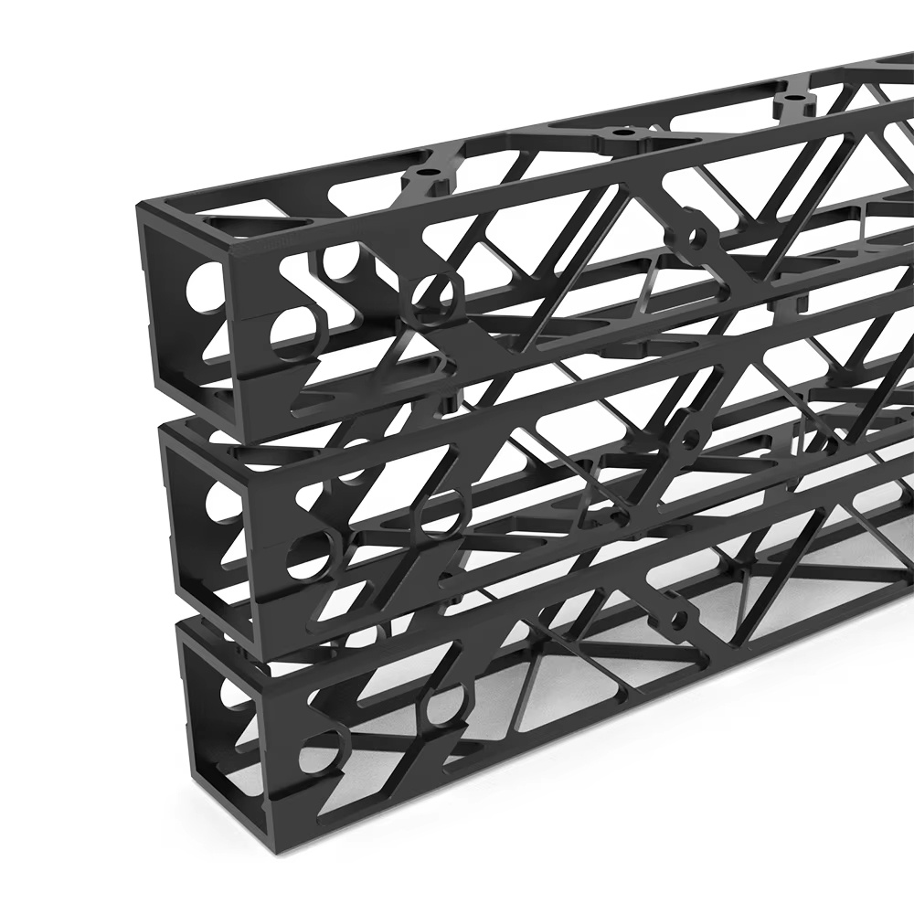 Fabriquée à l’aide de la technologie CNC,cette structure est en alliage d’aluminium de haute qualité,garantissant une précision maximale et une construction légère. La surface noire anodisée et givrée offre une apparence élégante et une excellente texture.