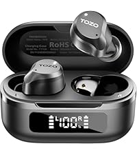 TOZO Hybrid Écouteurs Bluetooth sans Fil, Ecouteurs Bluetooth 5.3 avec Hybride ANC 6 Mics ENC ORIGX 2.0 Acoustique, EQs Ajustement, 59H d'Autonomie, LED Écran, USB Type C, IPX8 Noir 39,97